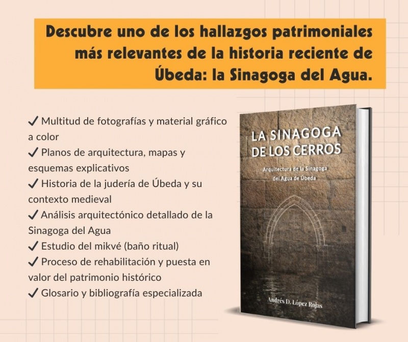 El arquitecto técnico Andrés D. López Rojas ( Master en Gestion en Edificación y Master en Teoria e Historia de la Arquitectura) nos sumerge en la segunda Edición de "La Sinagoga de los Cerros" en la arquitectura, la historia y el proceso de rehabilitación de este lugar singular de Úbeda. Un libro que fue rosa de los vientos para el documental "Lo visible y lo invisible" estrenado en Úbeda en Junio 2026 y que ha sido seleccionado en 2024 y 2025 por MICA (Muestra Internacional de Cine Astronómico de Tenerife)